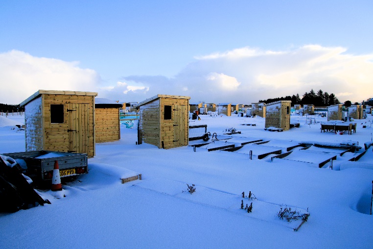A community allotment site at Balmacassie providing growing space and learning opportunities for residents of the Ellon area.